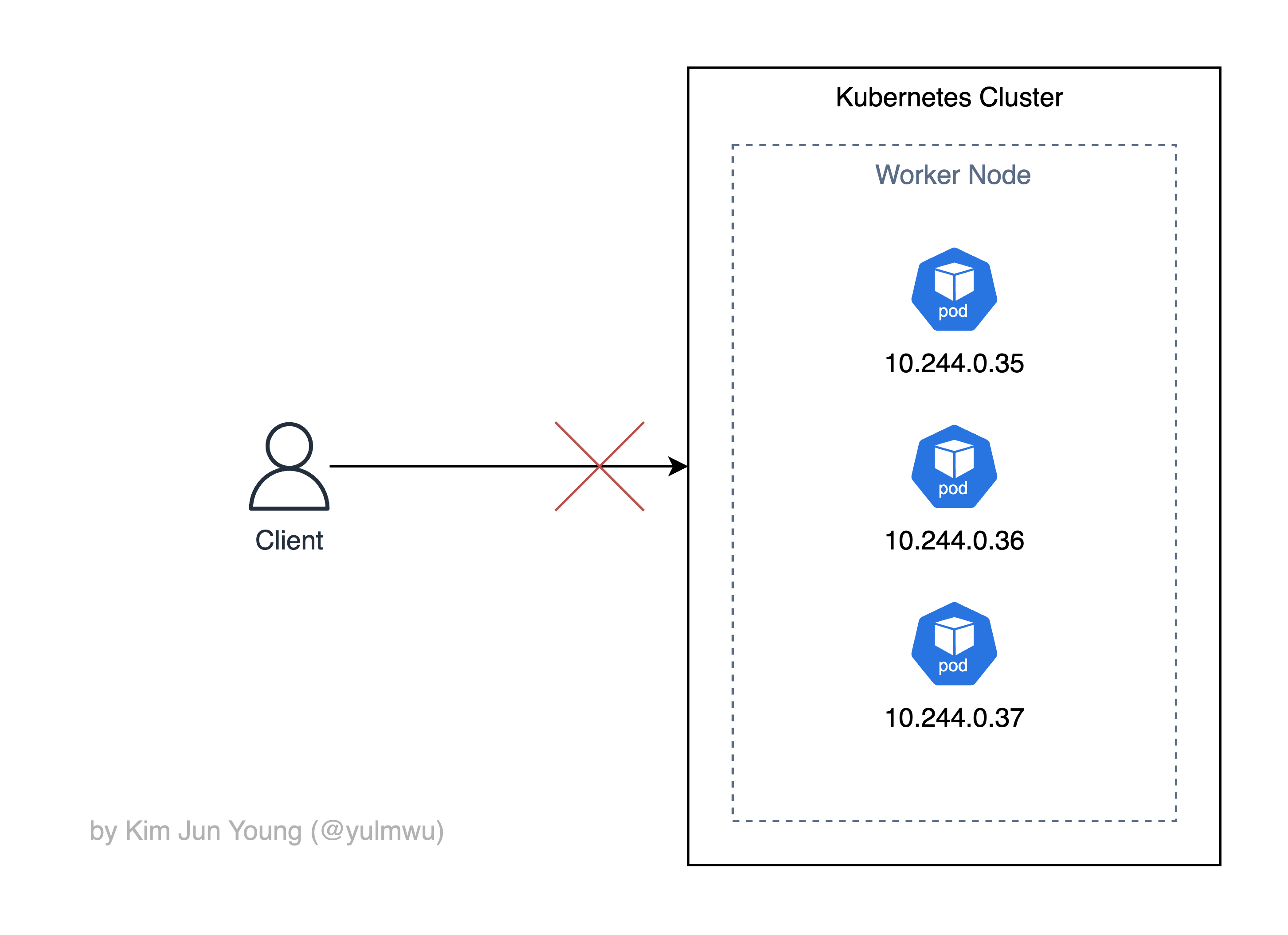 그리고 이러한 파드들은 기본적으로 외부에서 접근할 수 없으며(2번 문제), CNI에서 할당해준 IP를 개별적으로 가지고 있기 때문에 분산 서비스를 하기도 어렵다.