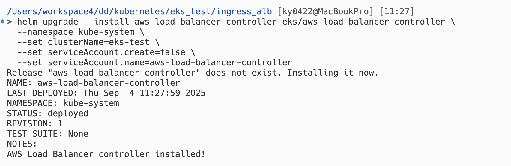 helm upgrade --install aws-load-balancer-controller eks/aws-load-balancer-controller \