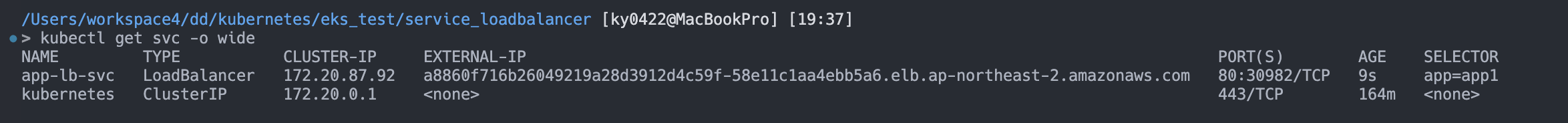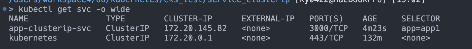 service/app1-svc ClusterIP 172.20.174.124 <none> 3000/TCP 2m9s app=app1