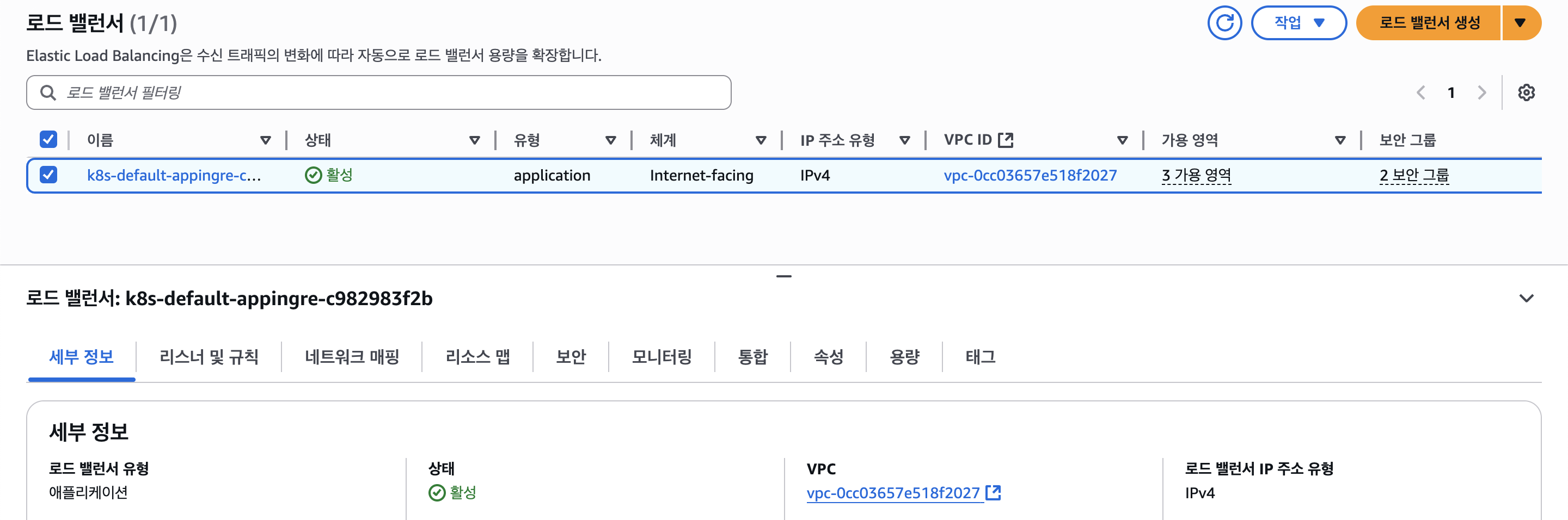 그리고 조금 기다리면 아래와 같이 ALB가 프로비저닝이 된걸 볼 수 있다. 해당 로드밸런서를 자세히 보자.