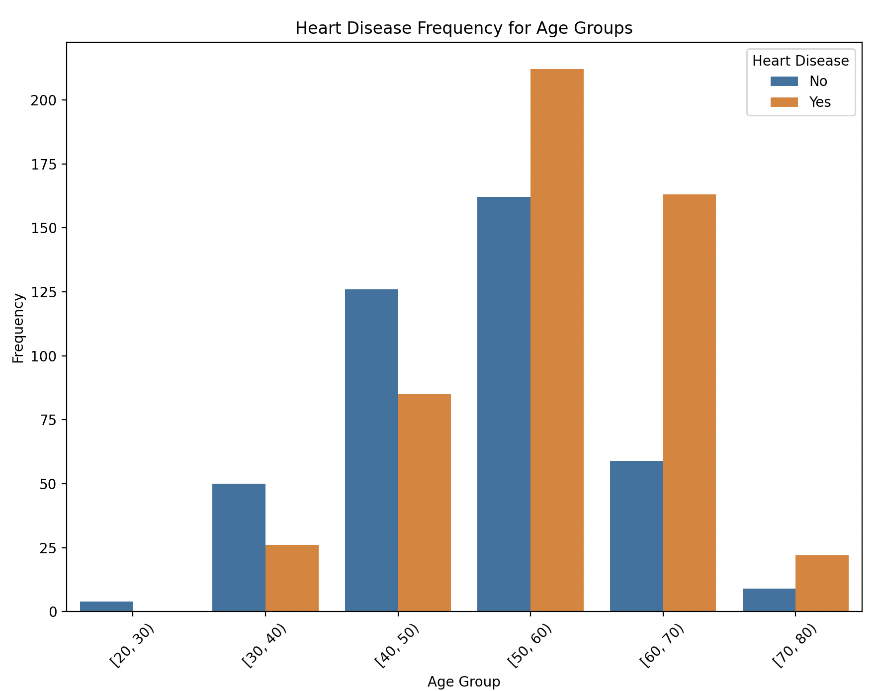 sns.countplot(x='AgeGroup', hue='HeartDisease', data=heart_data)