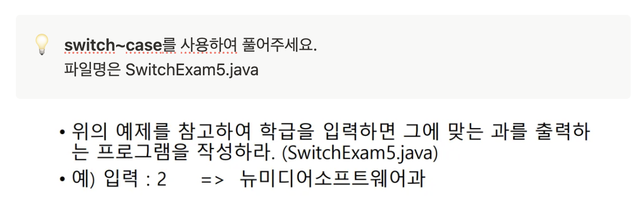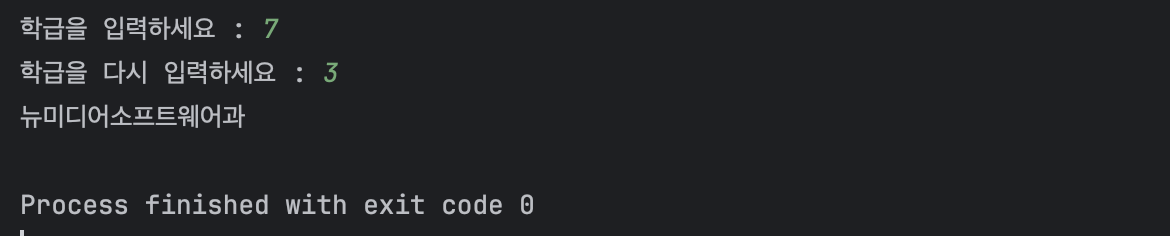 case 1, 2, 3, 4 -> System.out.println("๋ด๋ฏธ๋์ด์ํํธ์จ์ด๊ณผ");