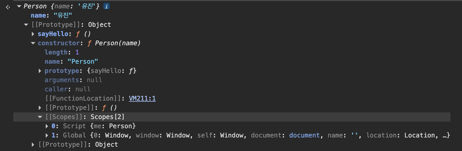 이때 Object.prototype 은 프로토타입 최상위에 위치하는 객체이다! 그래서 프로토타입 체인의 종점이라고 한다.