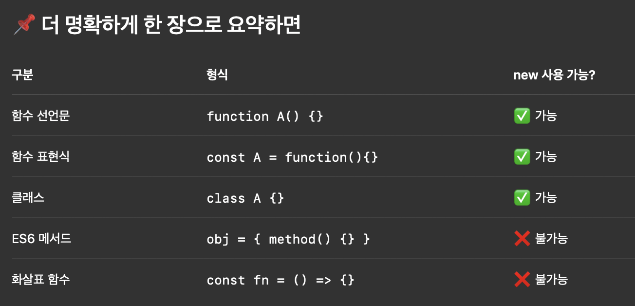 함수에서 new.target 을 사용하면 함수가 new 연산자와 함께 생성자 함수로서 호출되었는지를 확인 가능하다!