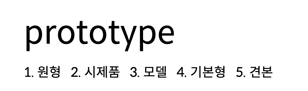 프로토타입은 사전적으로 "원형" "모델" "기본형" "견본" 과 같은 뜻을 가지고 있다. "원형", 즉 본이 되고 표준이 되는 것이 바로 프로토타입이다.