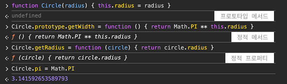 * 프로토타입은 Circle 생성자 함수의 prototype 프로퍼티에 바인드된다.