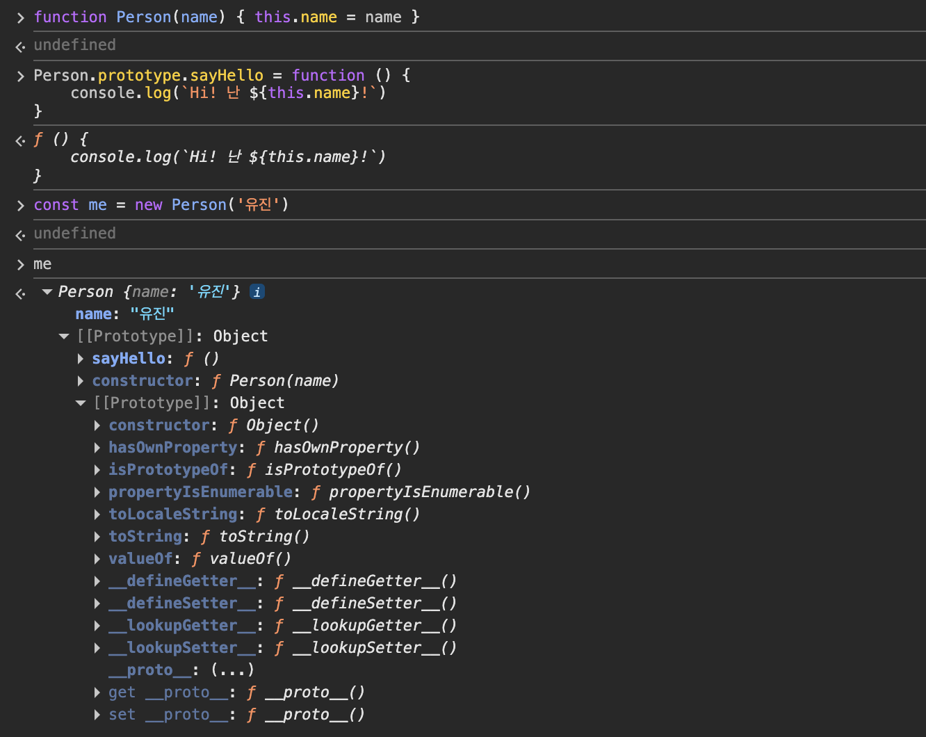 앞서 프로토타입은 자바스크립트의 객체지향 동작의 기반이 되는 것이라고 언급한 바 있다.