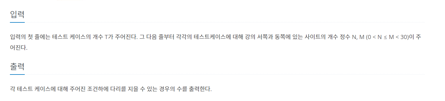 M개의 점 중에 N개의 점을 순서를 고려하지 않고 고르면 되므로 다음과 같이 해결