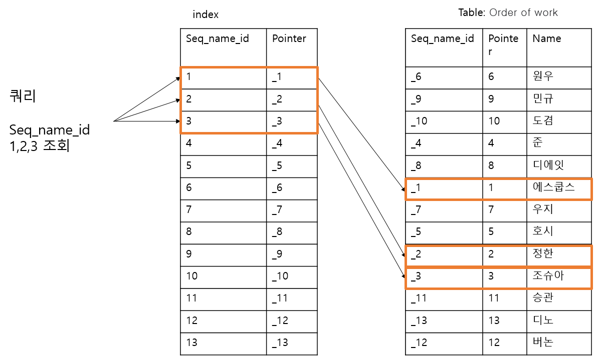 인덱스 적용시 정렬작업 후 정렬된 순서를 정의함