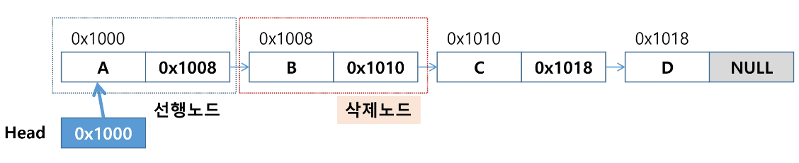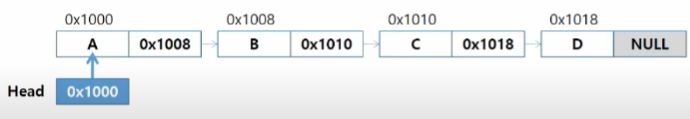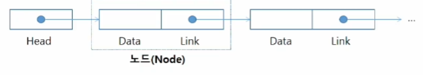 헤드가 가장 앞의 노드를 가리키고 링크 필드가 연속적으로 다음 노드를 가리킴