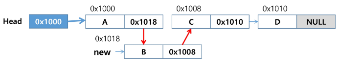 링크를 통해 원소에 접근 => 순차 리스트에서처럼 물리적인 순서를 맞추기 위한 작업 필요 X