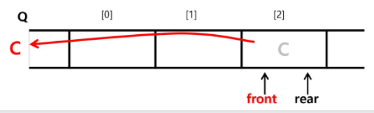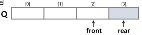 선형 큐를 이용한 원소의 삽입/삭제 시, 배열의 앞부분에 활용할 수 있는 공간이 있지만 rear = n-1 즉 포화상태로 인식하여 더 이상의 삽입을 수행하지 않게됨.