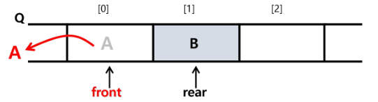 | deQueue() | 큐의 앞쪽(front)에서 원소를 삭제하고 반환하는 연산 |