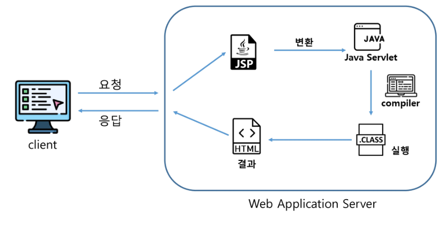 HTML 내에 Java를 작성(Servlet과 반대)하여 동적으로 웹페이지를 생성하여 브라우저에게 돌려주는 페이지