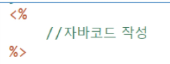 | 스크립트릿(scriptlet) | 자바코드 작성 | <% %> |