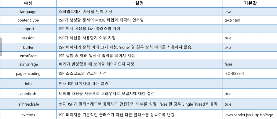 page : 해당 JSP 페이지 전반적으로 환경을 설정할 내용 지정