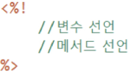 | 선언(declaration) | 변수, 메소드 선언 | <%! %> |