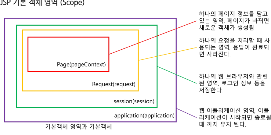 | pageContext | javax.servlet.jsp.PageContext | JSP 페이지 정보를 저장하는 객체 |