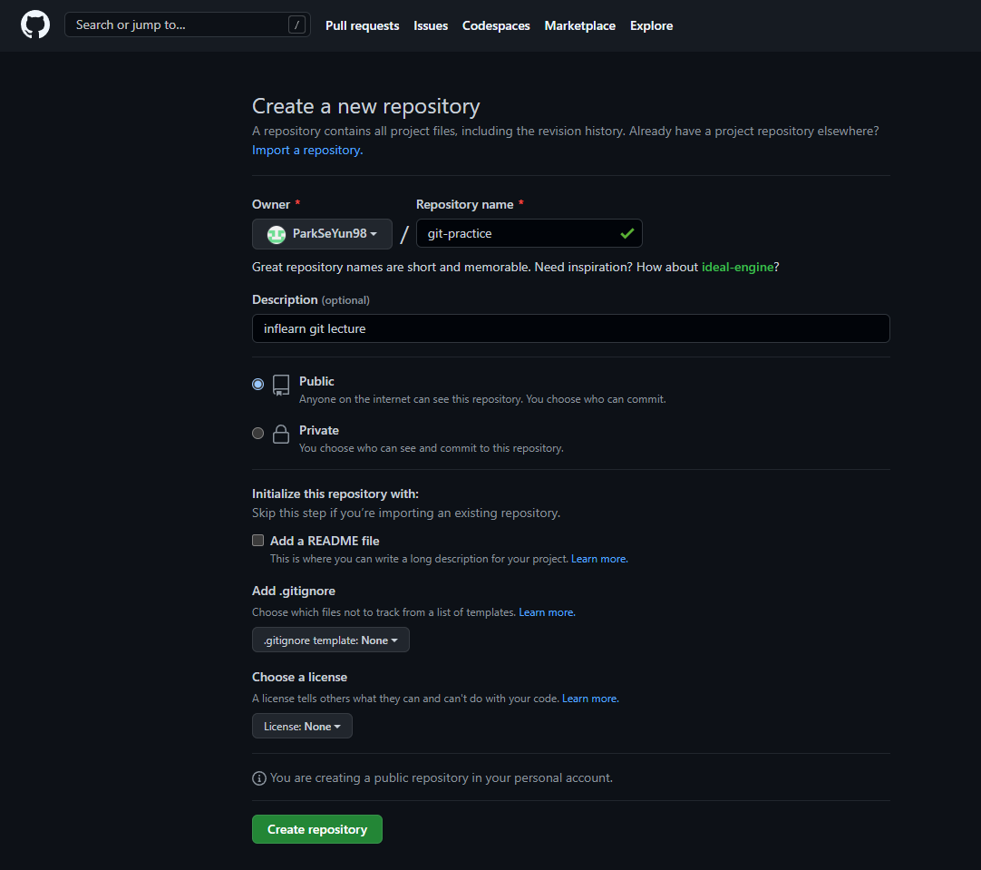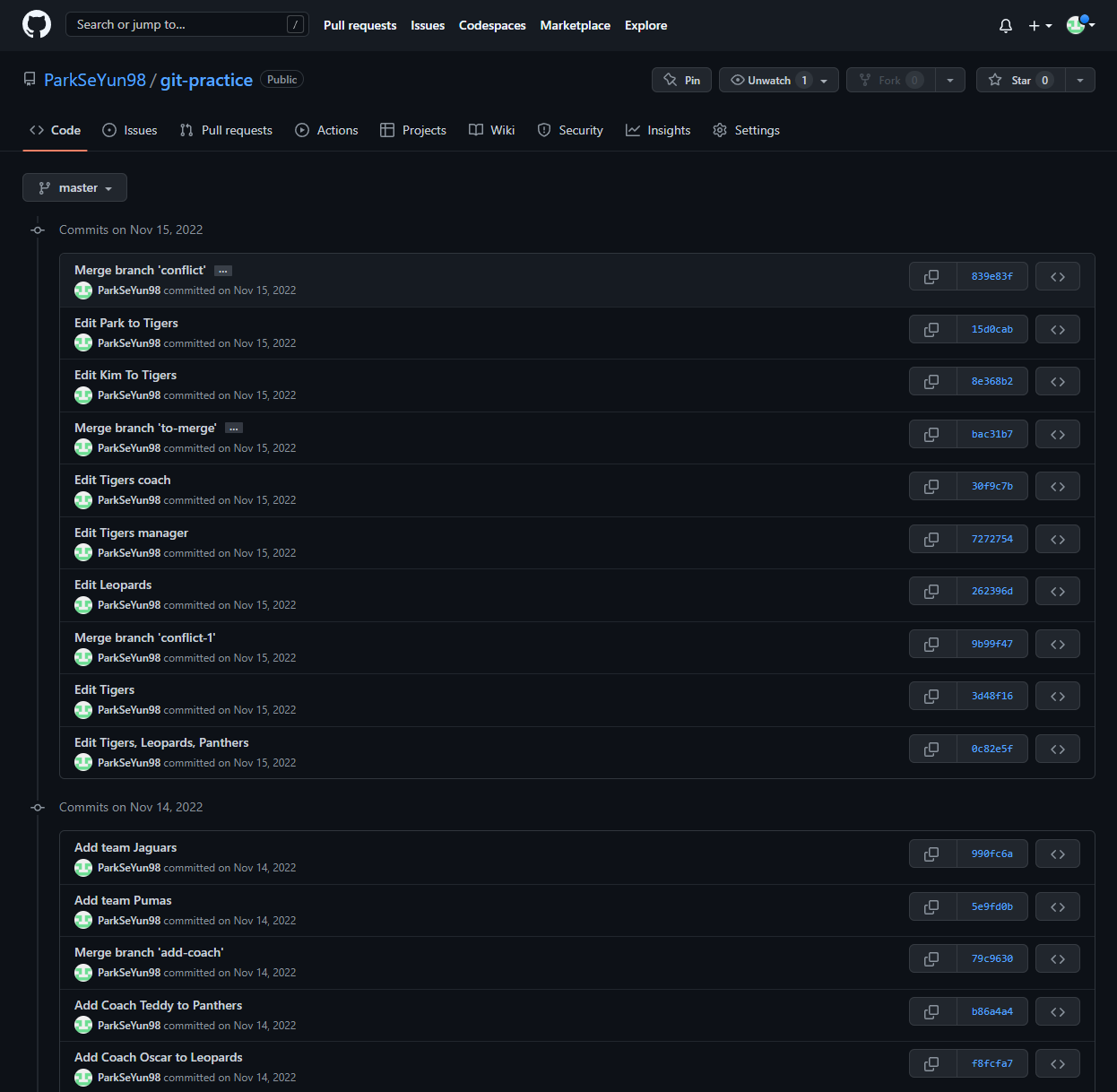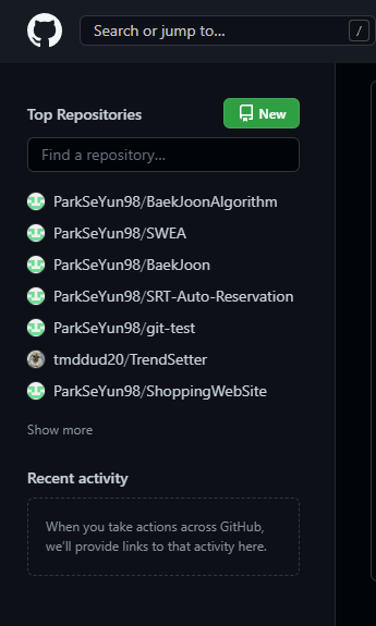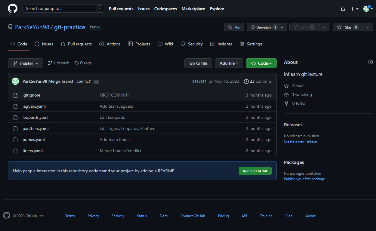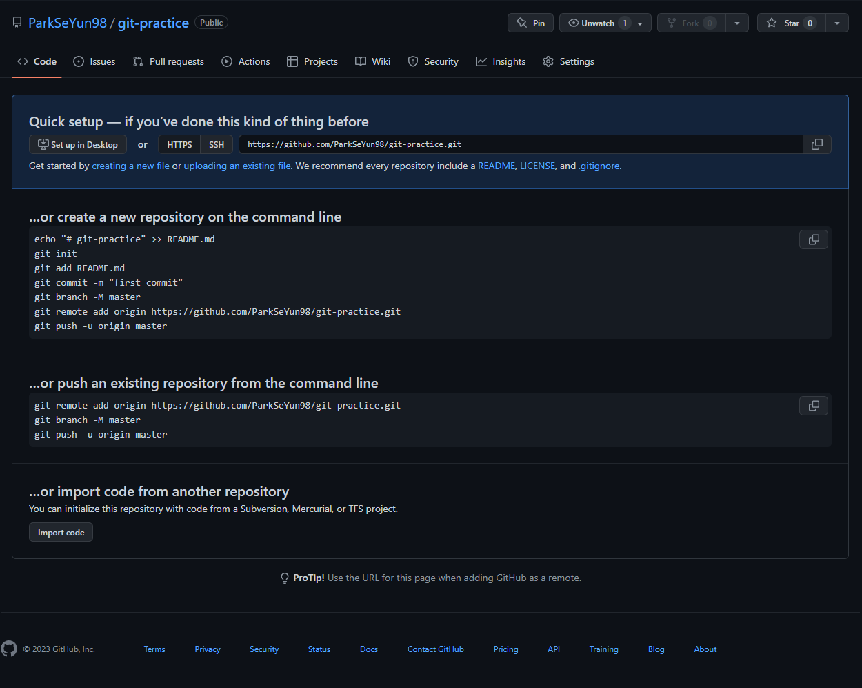 이후 아까 레포지토리 있던 사이트 새로고침 하면 아래 사진처럼 변함
