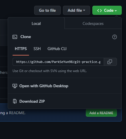 로컬의 Git 저장소에 원격 저장소로의 연결 추가