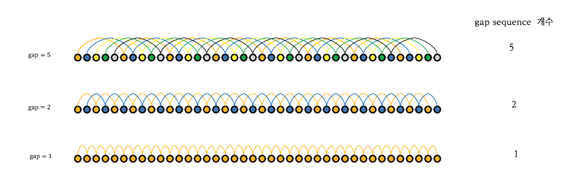 : 같은 gap을 가지는 모든 gap sequence에 insertion sort를 수행