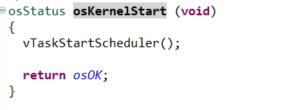 osKernelStart는 CMSIS RTOS API 이고, vTaskStartScheduler() 는 FreeRTOS API 이다.