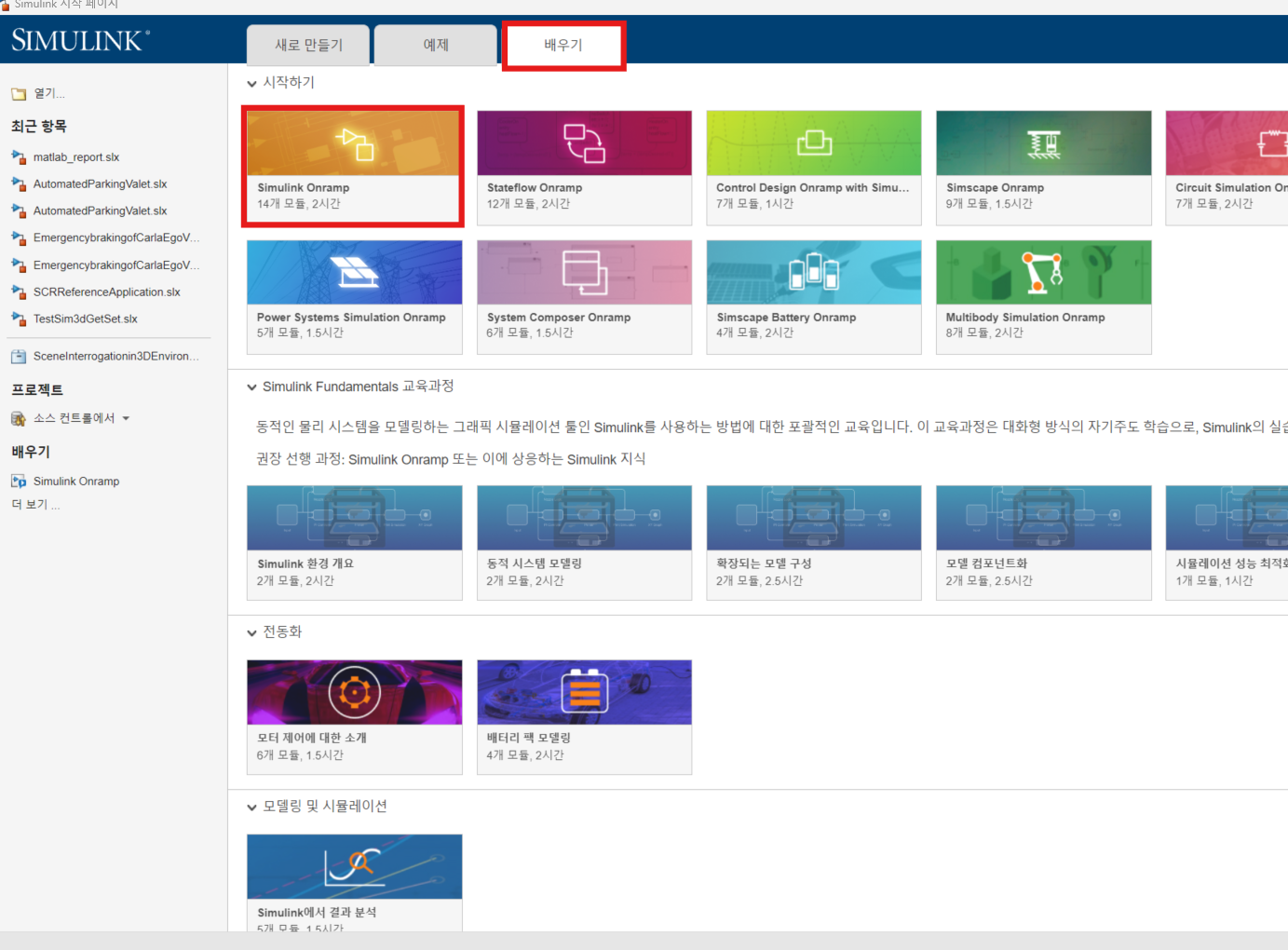Onramp는 MathWorks가 제공하는 무료 온라인 기초 실습 코스(인터랙티브 튜토리얼)이다.
