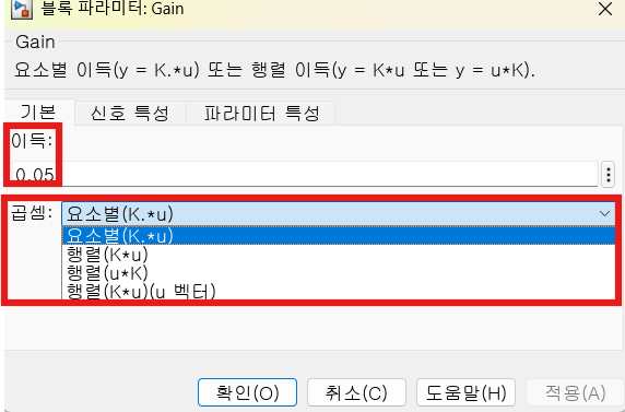 Gain Block은 상수 곱의 기능을 수행한다.