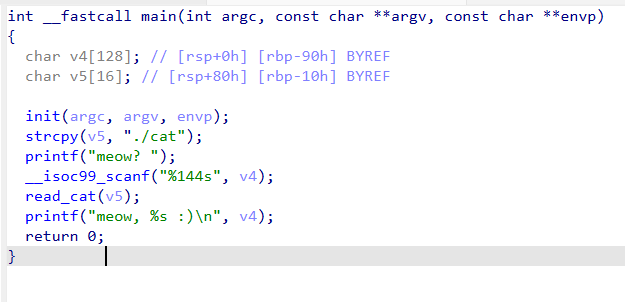 char v5[16]; // "./cat" ๋ฌธ์์ด ์ ์ฅ ๋ฒํผ