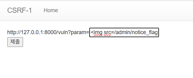 http://127.0.0.1:8000/vuln?param=( ) 에 무언갈 입력할 수 있습니다. 이 입력을 통해 CSRF 공격을 하는 문제임을 알 수 있습니다. app.py를 보면, @app.route("/admin/notice_flag")