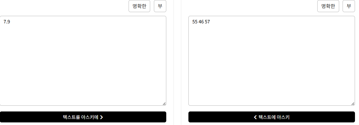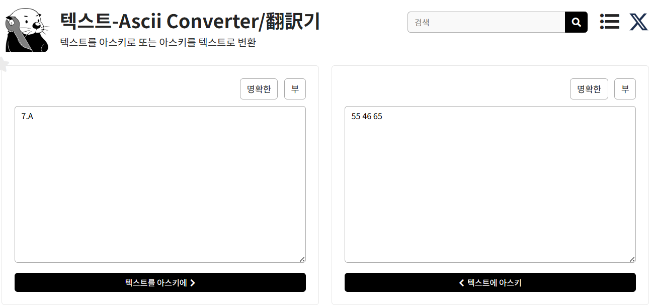 아스키코드 변환기 ( https://ko.rakko.tools/tools/76/) 를 사용하여, 7.9가 55 46 57 , 7.A가 55 46 65 임을 확인하였습니다.