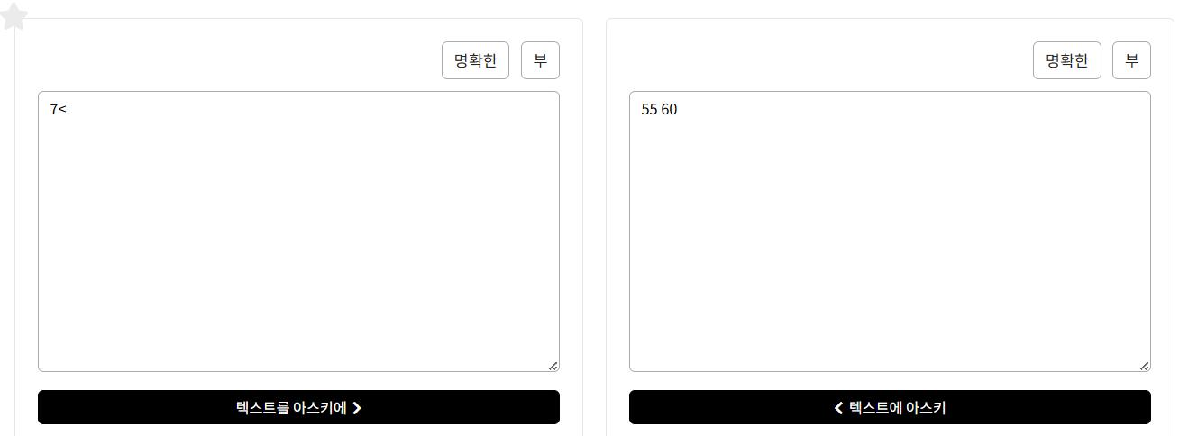 랜덤한 값인 55 60 을 변환해보니 7< 임을 확인하였습니다.
