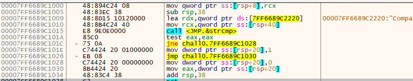 input : 을 출력합니다.[rsp+20] 주소에 저장합니다.[rsp+20]을 검사합니다.eax == 0 라면 wrong, 같다면 correct을 출력합니다.입력한 값이 정답인지 검사하는 함수인 00007FF6689C114E | call chall0.7FF6689C1000 이 핵심함수임을 알 수 있었습니다.
