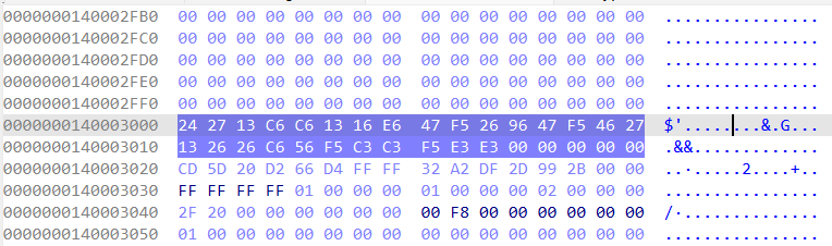 0000000140003000 24 27 13 C6 C6 13 16 E6 47 F5 26 96 47 F5 46 27 $'........&.G...