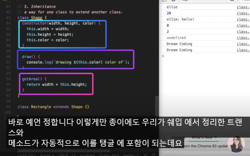 rectangle.draw(); // Shape의 메소드인 .draw()를 rectangle 안에서도 부를 수 있다. Rectangle은 Shape를 상속했기 때문에! Rectangle은 Shape의 값이나 메소드를 쓸 수 있다.