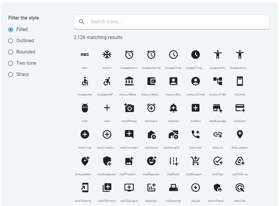 https://mui.com/material-ui/material-icons/ 에 들어가면