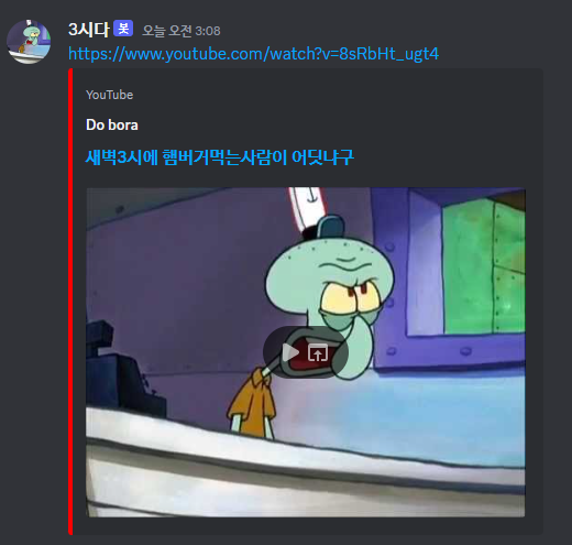 다들 새벽까지 디스코드에 있었기 때문에 나는 새벽 3시가 되면 저 영상 주소를 올려줬다. 그런데 어느날 문득 이 생각이 들었다.