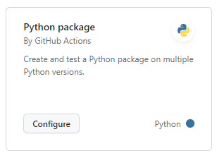 Actions에 들어가서 New workflow를 눌러주고 Python package를 택해주자.