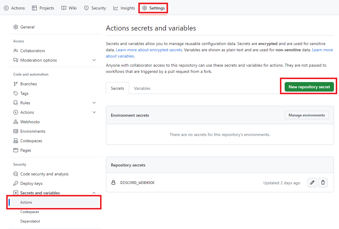 레포지토리의 secrets를 이용해야 추후 테러를 방지할 수 있다.