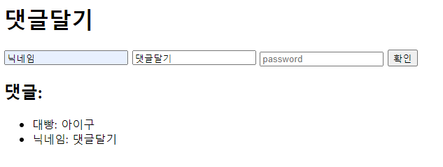 이제 input에 value값을 가지고 왔으니 마지막으로 댓글에 입력이 될 수 있도록 만들어야한다.