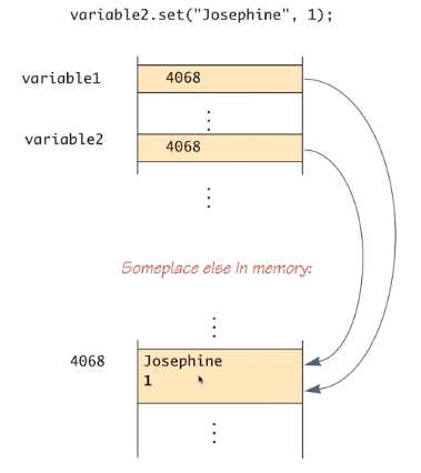 variable1과 variable2가 같은 주소를 가짐, 같은 변수를 갖게됨
