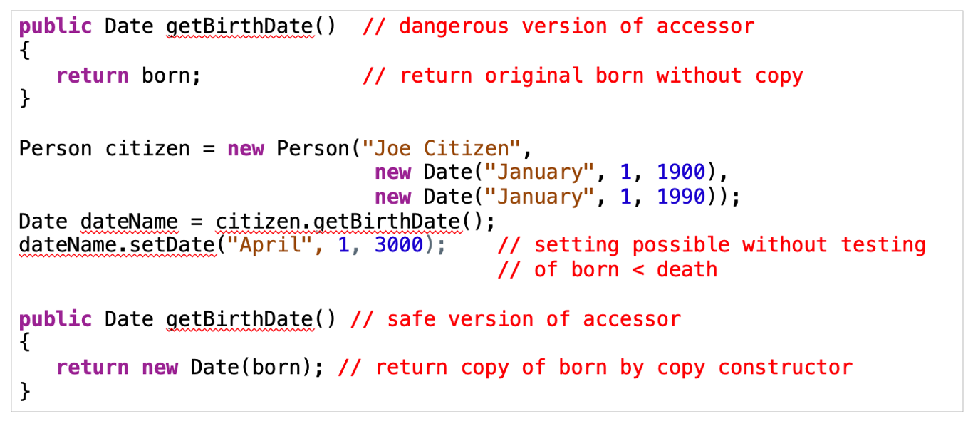 Shallow copy: not a deep copy, can cause dangerous privacy leak