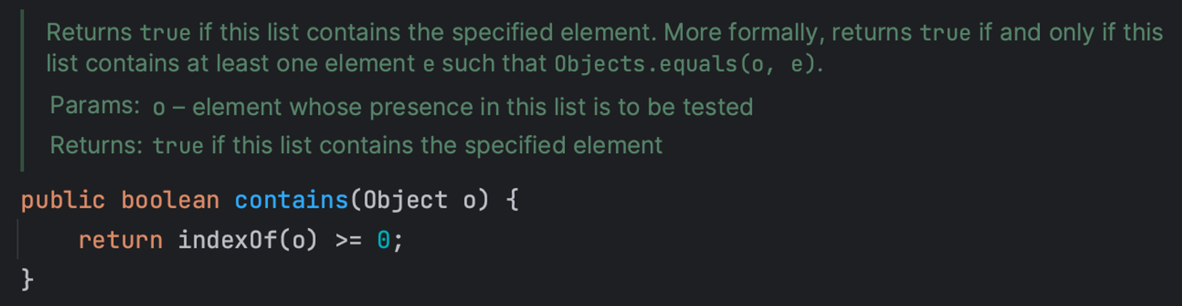 발음 평가 기술 또한 저의 프로젝트의 핵심 기술이라고 생각을 해 성능을 고려하기 위해 contains() 메서드의 내부 동작 원리를 보았습니다.