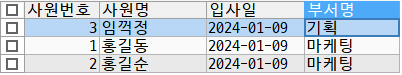 ์ด๋ธ์์๋ ๋ถ์๋ฅผ dept no. (๊ณ ์ ์๋ณ๊ฐ)์ผ๋ก ๊ตฌ๋ณํด์ฃผ๋ฉด ๋๋ค. ์ดํ ์ฌ์์ด ์ด๋ค ๋ถ์์ธ์ง ์๊ณ ์ ํ ๋๋ ๋ถ์ํ
