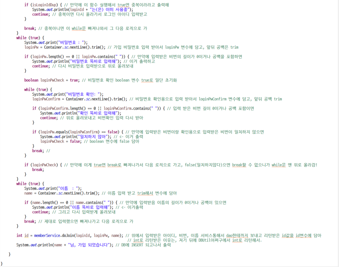 - Member랑 관련된 클래스들 로직에 전부 주석달기