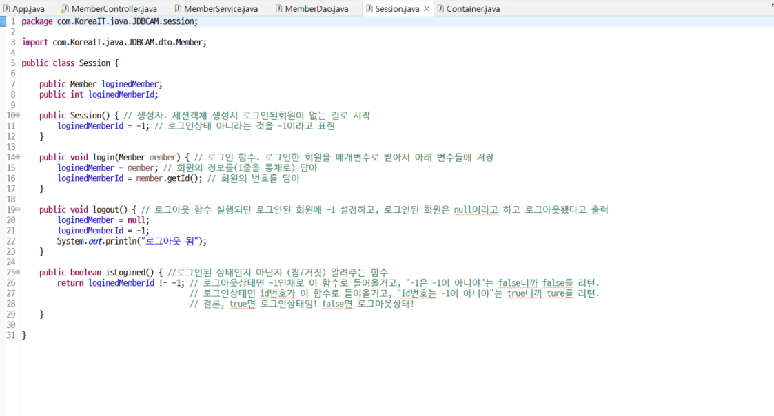 Member관련 모든 클래스들 로직 이해를 위해 주석을 달았다