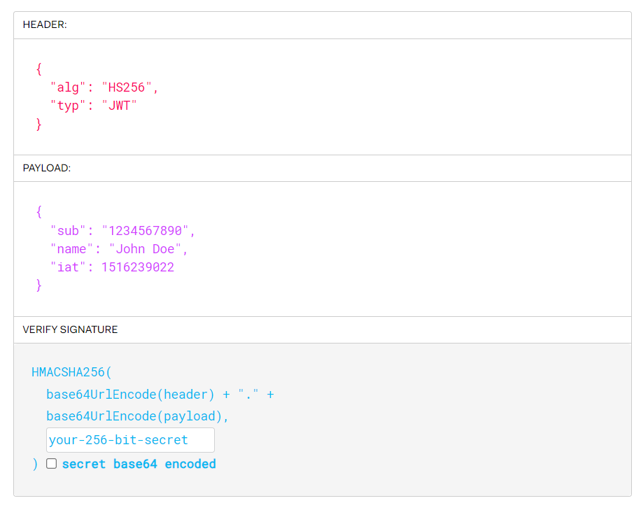 서버는 요청에 토큰 값이 실려들어오면, 헤더, 페이로드 값을 "서버의 비밀 키" 와 함께 돌려봐서 계산된 결과값이 서명 값과 일치하는 결과가 나오는지 확인한다.
