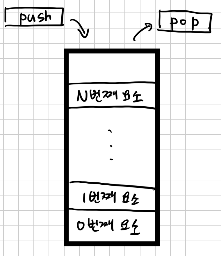 스택은 LIFO(Last In First Out) 구조를 가진 자료구조. 즉,먼저 들어간 데이터는 마지막에