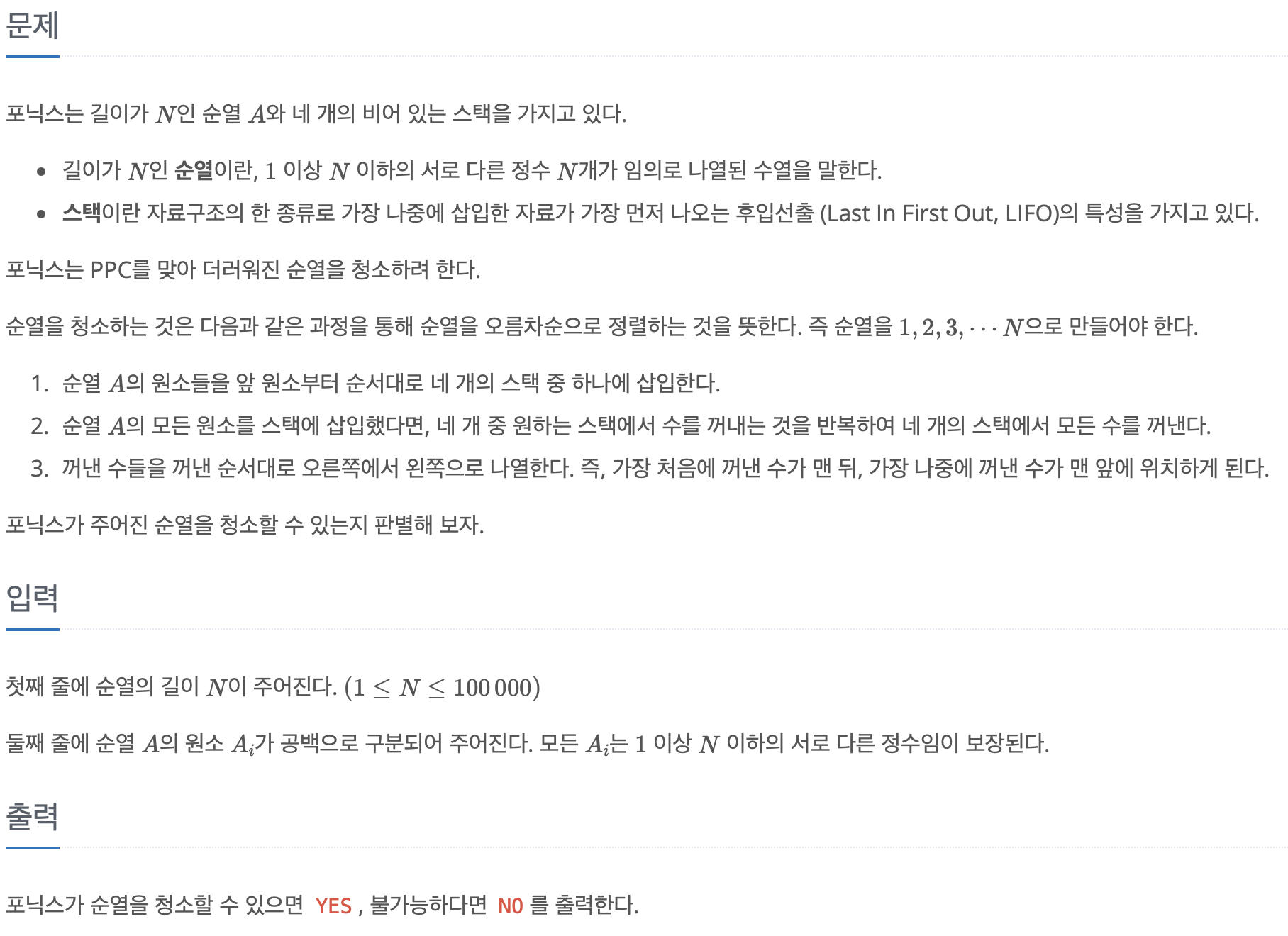 public static boolean stackClean (int N, int[] A) {